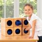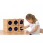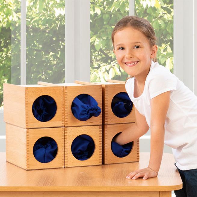 Dinge ertasten heißt, sie zu erobern. Machen Sie mit Ihren Kindern doch mal spannende Experimente. Nutzen Sie die Fühlbox aus Holz und finden Sie gemeinsam heraus, wie es um das kindliche Verständnis von Größe und Form verschiedener Gegenstände bestellt ist. Füllen Sie einfache Alltagsgegenstände aus Ihrem Gruppen- oder Klassenraum in die Box. Nun greifen die Kinder in die Fühlbox und erklären, was sie glauben, dort zu erspüren. Die Kinder schulen so ihr haptisches Verständnis und trainieren gleichzeitig ihre Erklärfähigkeiten.