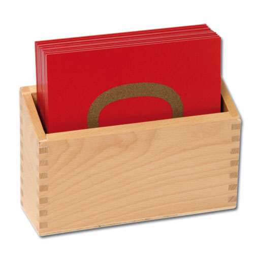 Erfühlen, besprechen, begreifen und nachzeichnen. Auf rot lackierten Holzplatten befinden sich die Zahlen aus Sandpapier. Die Kinder fahren mit dem Finger darüber, zeichnen die Zahl nach und verinnerlichen sie und ihre Bedeutung. Auch für Motorikübungen geeignet. Der Holzkasten dient zur praktischen Aufbewahrung.