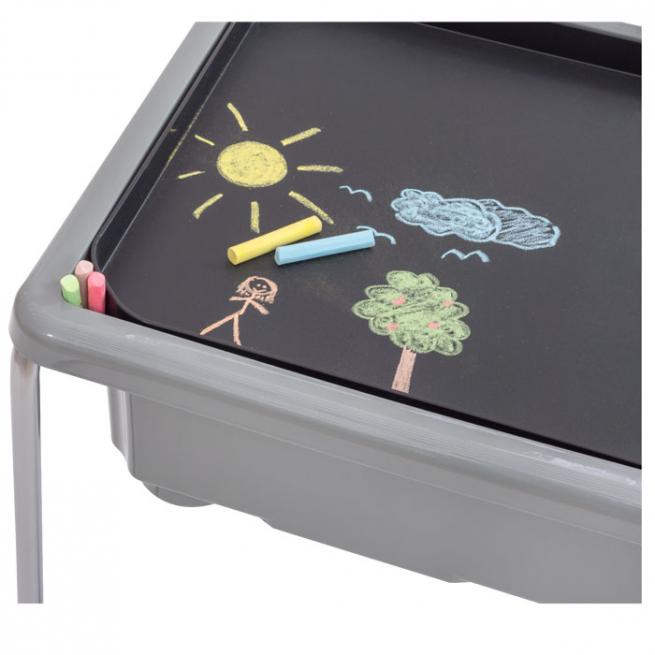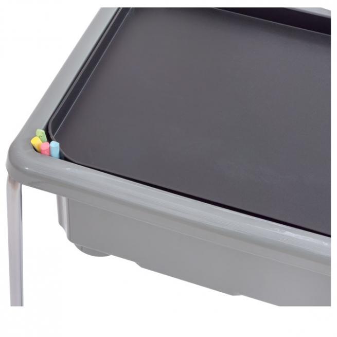 Vielseitigen Spielspaß erleben Ihre Kinder mit dem Fun² Play-Tablett. Dank seiner Begrenzung fallen Stifte, Blätter, Bauklötze oder Sortier- und Bastelutensilien nicht hinunter. Das Tablett kann zudem auch eine fabelhafte Ausstellungsfläche zum Legen tollster Kunstwerke aus unterschiedlichsten Materialien sein. Auf dem schwarzen Tablett können Ihre Kinder sogar mit Tafelkreide malen. Das Tablett passt optimal als Einsatz in die Wanne oder dient umgedreht als Deckel zum Verschließen. Im Ständer schafft das Regal sogar weiteren Stauraum, wenn Sie es auf die Führungsschienen schieben. Es besteht aus robustem Kunststoff und mit einem feuchten Tuch reinigen Sie es ganz leicht. Erhältlich in Blau, Schwarz und Grün. Wanne und Ständer sind nicht enthalten. Bitte separat bestellen.