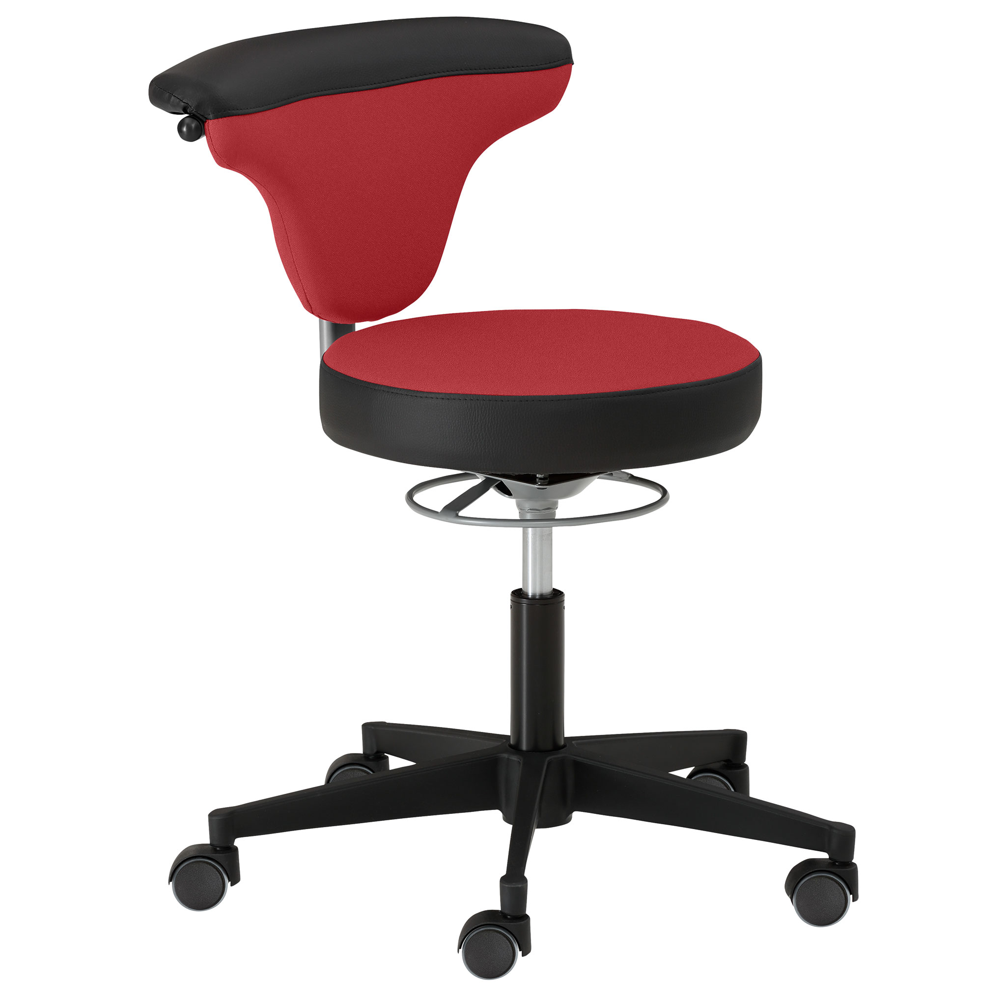 Ob Lehne im Rücken oder vor dem Bauch, um die Arme darauf abzulegen – auf dem Funktionsdrehstuhl mit stufenloser Höhenverstellung und 360° drehbarer Lehne sitzen Sie immer bequem. Die Sitzhöhe verstellen Sie über die Ringauslösung stufenlos von 40 bis 50 cm. Sitzfläche und Rücken sind mit robustem Stoff oder wahlweise mit strapazierfähigem Kunstleder bezogen, Sitzeinfassung sowie Armlehne immer mit Kunstleder. OEKO-TEX® ausgezeichnet.