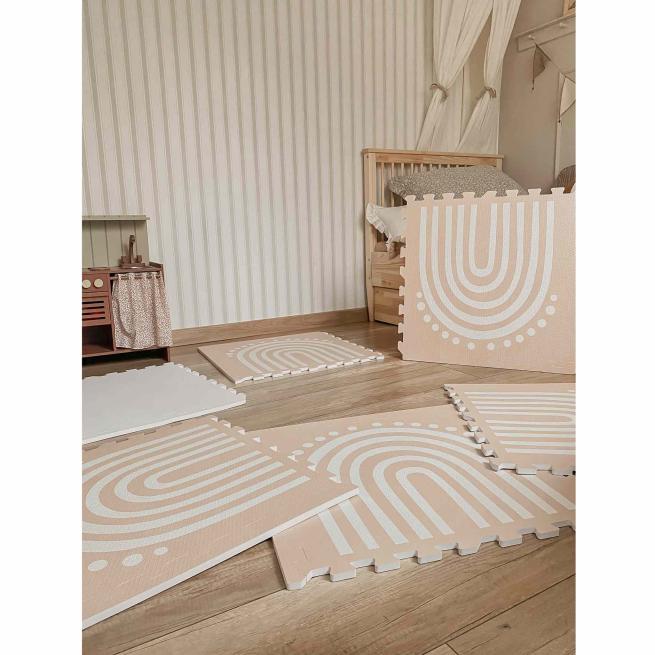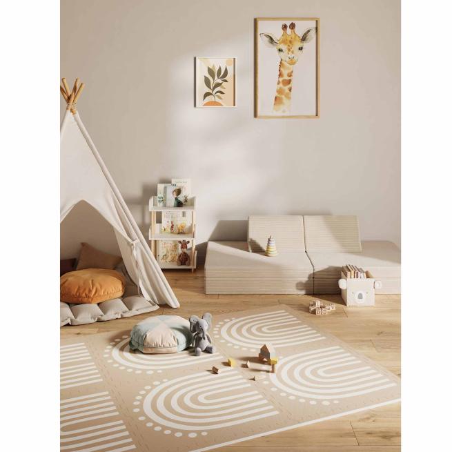 Die Funzy Spielmatte ist die optimale Grundlage für kreative Spielwelten. Aus den 6 zusammensteckbaren Teilen gestalten Sie eine sichere und gemütliche Spielumgebung. Ob als weiche Krabbelunterlage, als Spielfläche zum Toben oder als kuschelige Ecke für ruhige Momente – die hochwertigen Puzzlemattenteile aus geprüftem EVA-Schaum setzen Sie vielseitig ein. Die Funzy Spielmatte überzeugt durch gedeckte, moderne Farben sowie dezente Designs, die sich harmonisch in jeden Gruppenraum einfügen und eine ruhige, einladende Umgebung kreieren. Wählen Sie aus jeweils 2 sanften Farben und den 3 Designs Arch, Trails und Smiles.