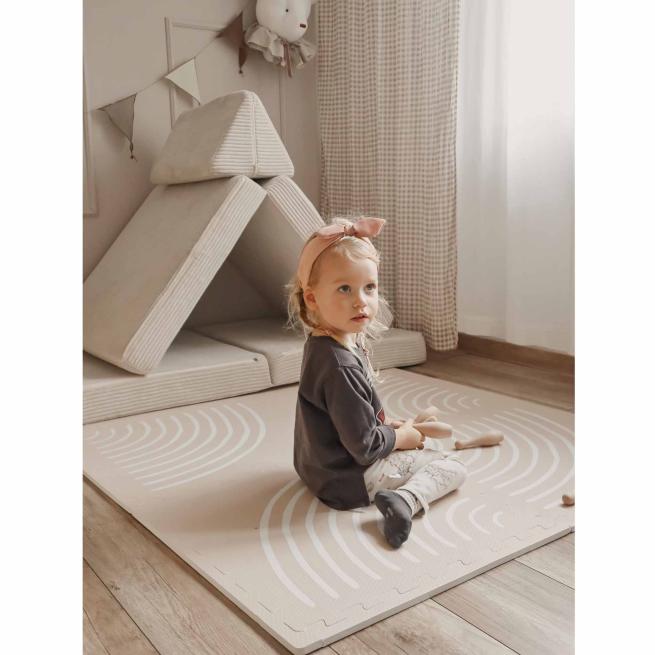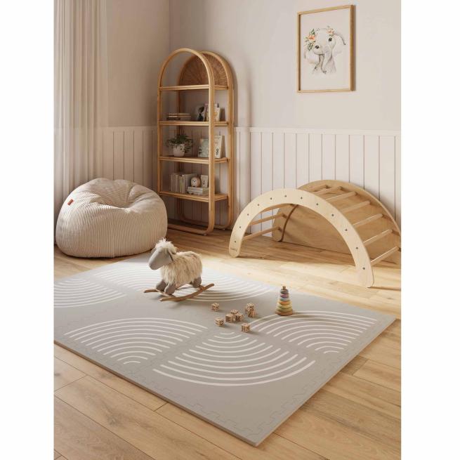 Die Funzy Spielmatte ist die optimale Grundlage für kreative Spielwelten. Aus den 6 zusammensteckbaren Teilen gestalten Sie eine sichere und gemütliche Spielumgebung. Ob als weiche Krabbelunterlage, als Spielfläche zum Toben oder als kuschelige Ecke für ruhige Momente – die hochwertigen Puzzlemattenteile aus geprüftem EVA-Schaum setzen Sie vielseitig ein. Die Funzy Spielmatte überzeugt durch gedeckte, moderne Farben sowie dezente Designs, die sich harmonisch in jeden Gruppenraum einfügen und eine ruhige, einladende Umgebung kreieren. Wählen Sie aus jeweils 2 sanften Farben und den 3 Designs Arch, Trails und Smiles.