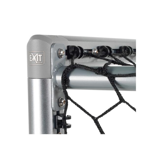 Ein echter Treffer ist dieses stabile und sehr robuste Fußballtor aus Aluminium. Die anodisierte Vorderseite des Aluminiumrahmens bietet zusätzlichen Oberflächenschutz vor Rost. Die Rückseite des Aluminiumrahmens ist zudem pulverbeschichtet. Das starke Netz mit sechseckigem Maschenmuster befestigen Sie ganz einfach an den hochwertigen schwarzen Kunststoff-Netzhaken. Dank der Verbindungselemente bauen Sie das Tor schnell auf und wieder ab. Aufgrund seines geringen Gewichtes transportieren Sie es leicht. Ab 5 Jahren.