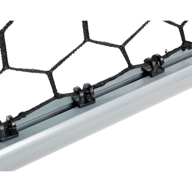 Hinweis: Bitte fixieren Sie das Tor dem Untergrund entsprechend mit Erdankern und stabilisieren Sie es mit einem Gegengewicht. Bestellen Sie das Zubehör bitte separat.