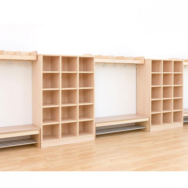 Freundlich-frische Ordnung im Eingangsbereich. Schnell bringen Sie und Ihre Kinder darin Handschuhe, Mützen, Tuch, Kuscheltier, Schnullerbox, Spielzeug oder Wechselgarderobe übersichtlich unter. Die kompakte Konstruktion sorgt dank stabiler Rückwand für sicheren Stand. Regale nur im Dekor Ahorn lieferbar.