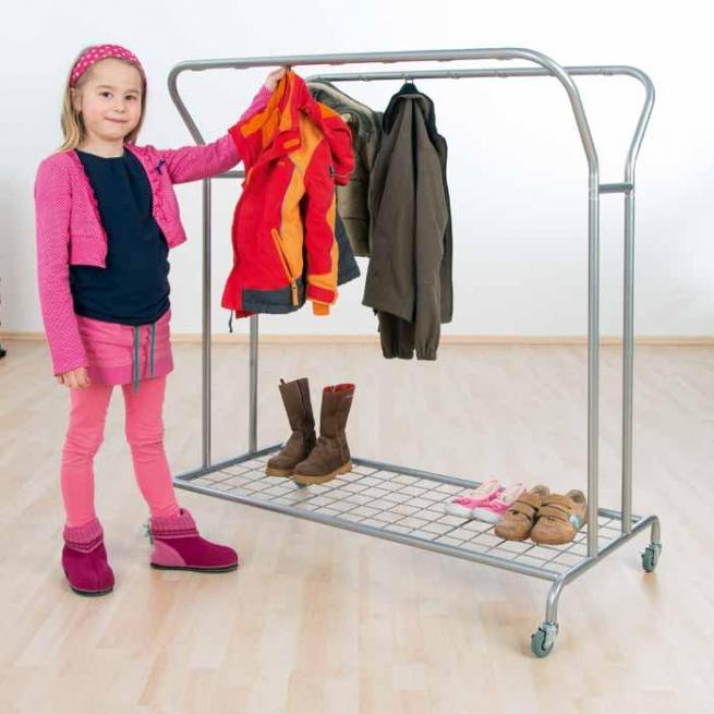4 Rollen machen diesen Garderobenwagen mobil und damit ortsunabhängig. Ein großer Vorteil durch die kindgerechte Höhe ist, dass Ihre Kinder Ihre Sachen selber aufhängen können.