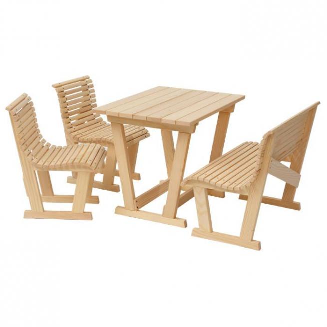 Gartenmöbel aus massivem Fichtenholz, unbehandelt, in kindgerechter Größe für Kinder von 2 bis 5 Jahren.