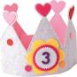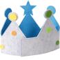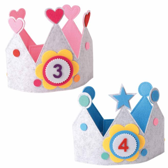 Eine Geburtstagskrone fürs Geburtstagskind. Die blaue oder pinke Krone besteht aus stabilem Polyesterfilz. Dazu gibt es Zahlen von 0 – 9, ebenfalls aus Polyesterfilz. Damit alle sofort erkennen, wie alt das Geburtstagskind wird, ist die jeweilige Zahl ganz einfach per Klett an der Krone zu befestigen. Praktischerweise sind die Geburtstagskronen rückseitig in der Weite verstellbar, sodass sie sich an jede Kinder-Kopfgröße anpassen lassen.