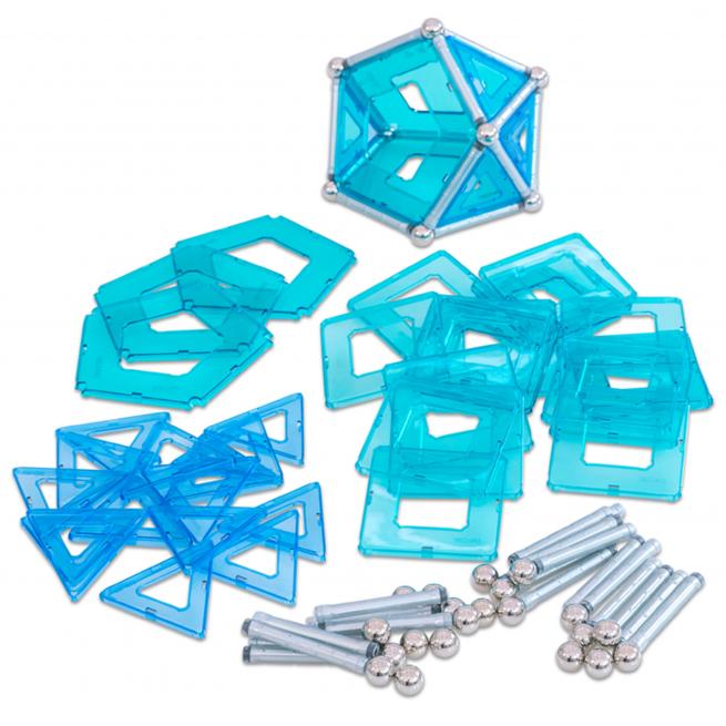 Wie spannend Geometrie ist, erleben Ihre SuS, indem sie geometrische Formen und Körper mit diesen 110 Teilen einfach selbst bauen. Das Baukastensystem mit seiner 33 % stärkeren Magnetkraft unterstützt die Schülerinnen und Schüler dabei. Aus den Magnetstäben, Metallkugeln und unterschiedlichen Plattformen konstruieren sie unzählige Formen und Gebilde. Gleichzeitig lernen sie dank der transparenten Magnetstäbe etwas über die Polarität. Die Plattformen sind superstabil.