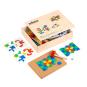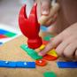 Entdecken Sie die faszinierende Welt der geometrischen Formen mit dem einzigartigen Hämmerchenspiel. Egal, ob die Kinder die vorgegebenen Musterkarten verwenden oder Ihrer Fantasie freien Lauf lassen möchten, mit diesem Set können alle Ihre eigenen Kunstwerke erschaffen. Die Formen aus Kunststoff lassen sich mühelos mit einem Hammer oder sogar mit den Fingern an der Korkplatte befestigen und genauso einfach wieder lösen. Durch diese spielerische Aktivität werden nicht nur die Auge-Hand-Koordination und das räumliche Vorstellungsvermögen gefördert, sondern auch die Kreativität angeregt.