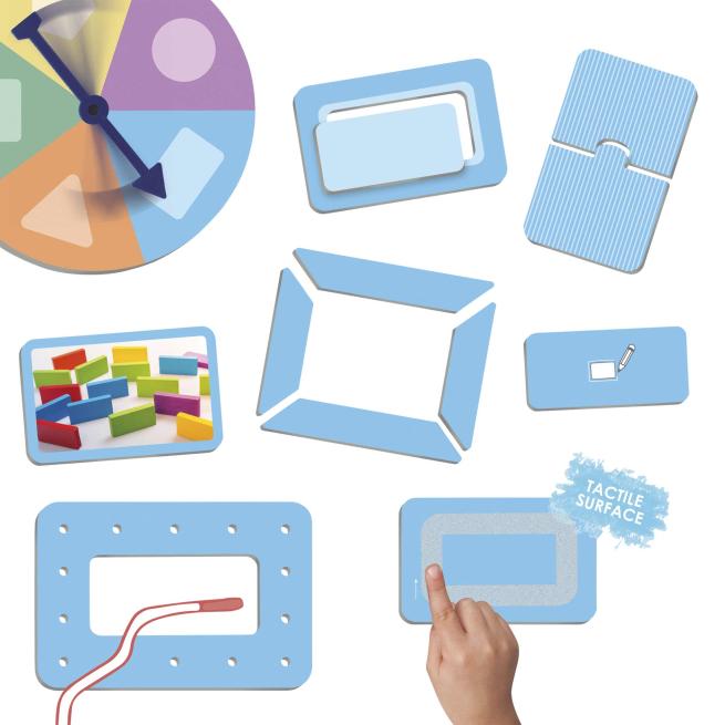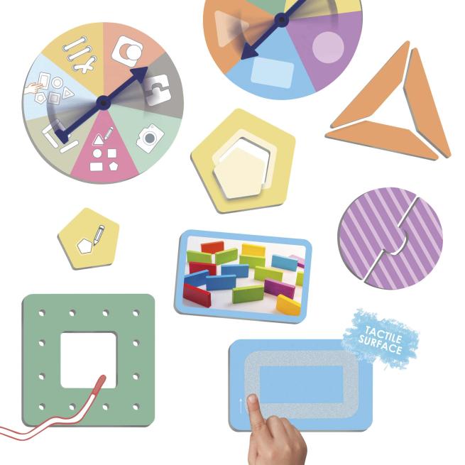 Die zahlreichen spielbaren Aktionen vermitteln den Kids visuell und haptisch die geometrischen Formen. Hierdurch prägen sich die Kinder die verschiedenen Figuren besonders gut ein und verstehen deren jeweilige Eigenschaften und Unterschiede. Das Spiel fördert ebenfalls die feinmotorischen Fähigkeiten der Kids sowie ihre Hand-Auge-Koordination. Zugleich unterstützt das Spiel die Kinder dabei, ihr abstraktes Vorstellungsvermögen zu schulen und geometrische Formen auch losgelöst vom Spielmaterial in ihrer Umgebung zielsicher zu erkennen.