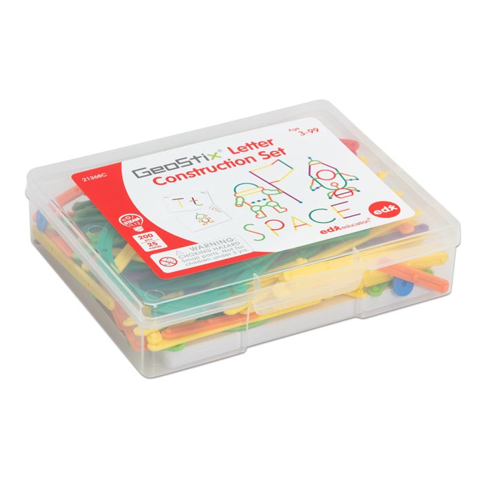 Die flexiblen GeoStix stecken Kinder, wie auf den doppelseitigen Karten abgebildet, zu Groß- und Kleinbuchstaben von A bis Z zusammen. Zusätzlich bieten die Karten Figurenmuster. Sogar eigene Ideen in 2D und 3D setzen die Kinder einfach um. In der praktischen Aufbewahrungsbox. Ab 4 Jahren.