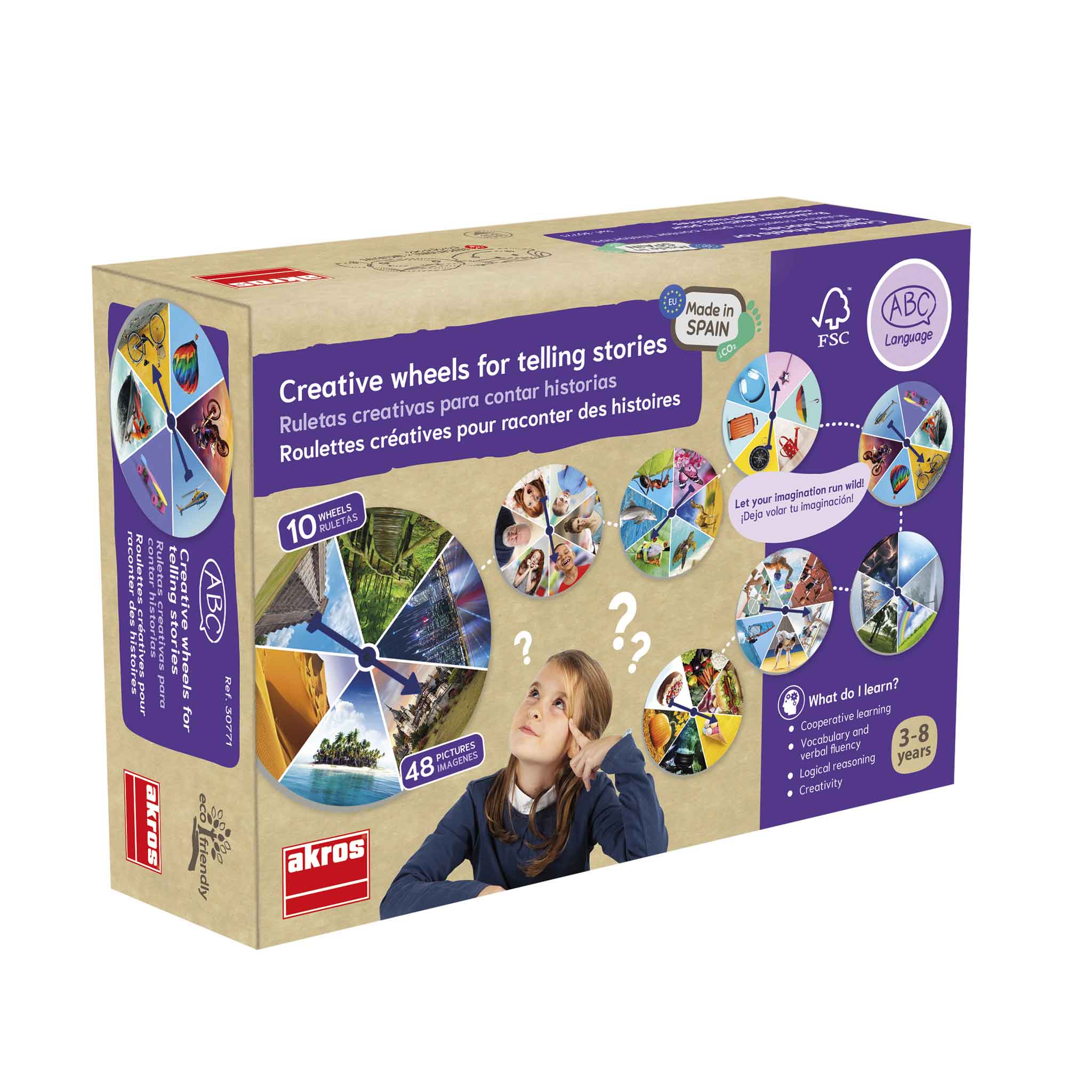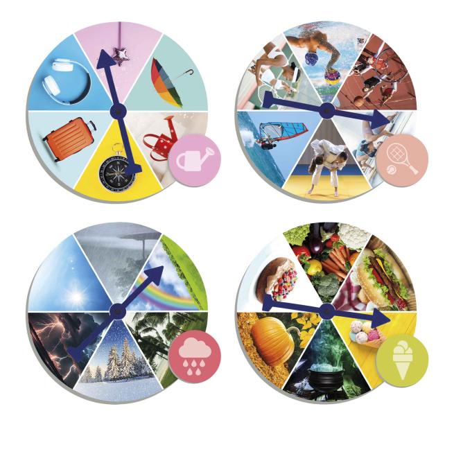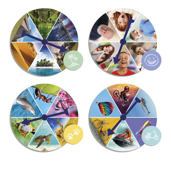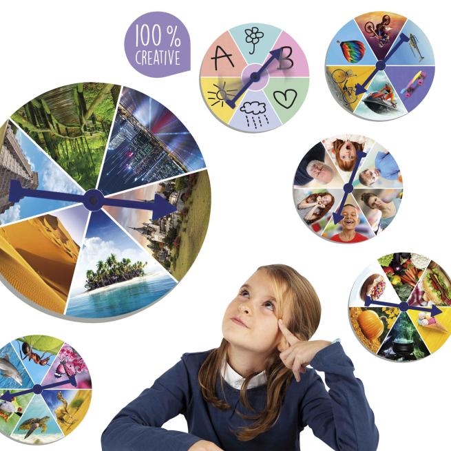 Freies Erzählen, kreatives und logisches Denken trainieren Kinder spielend, indem sie das Glücksrad drehen und ihre ganz eigene Geschichte zum erdrehten Thema erfinden.