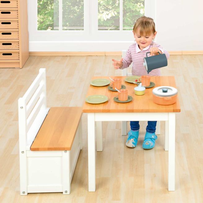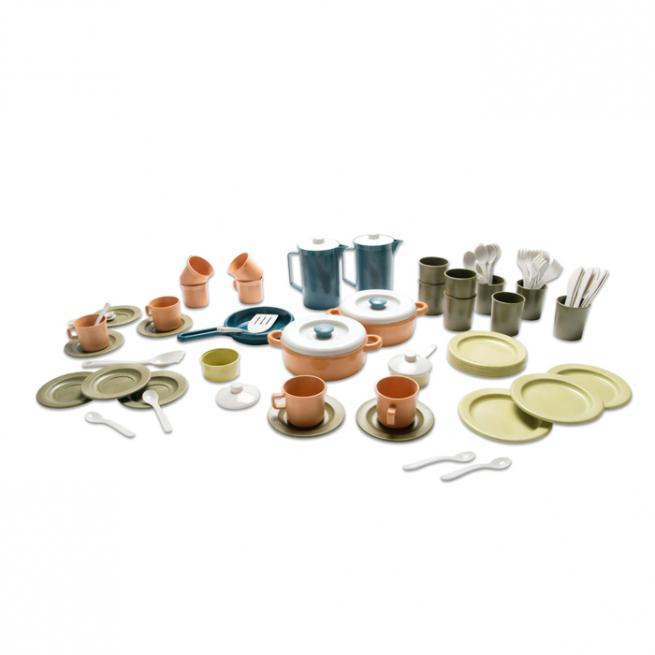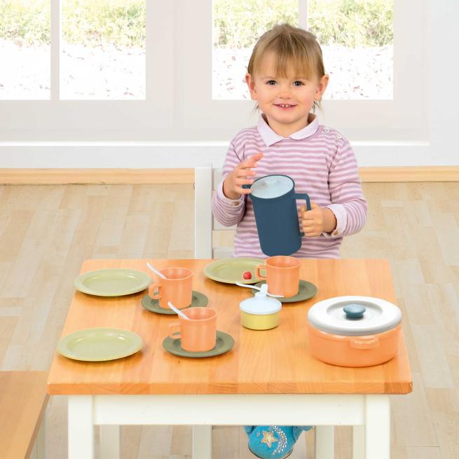 Ob gemeinsames Picknick im Garten oder zusammen gemütlich in der Puppenküche essen – in jedem Fall ist es ein nachhaltiges Erlebnis. Das große Geschirr-Set besteht aus Biokunststoff, ist besonders robust sowie strapazierfähig und spülmaschinengeeignet. Ab 2 Jahren.