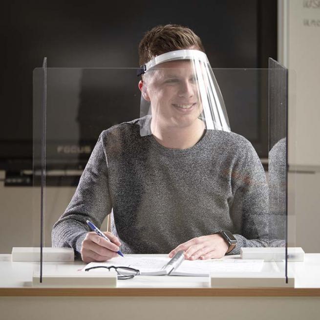 Schutz gegen Flüssigkeiten und Tröpfcheninfektion bietet der Gesichtsschutzschild. Mund, Nase und Augen sind effektiv gegen Flüssigkeiten geschützt. Der Kopf hat dabei maximale Bewegungsfreiheit. Das weiche Stirnpolster und das verstellbare Gummiband sorgen für ein angenehmes Tragegefühl. Der Schild in Einheitsgröße entspricht der DIN EN 166 Kategorie 2, verhindert durch seine optimale Luftzirkulation das Beschlagen und ist auch für Brillenträger geeignet.
