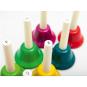 Mit Handglocken erzeugen Ihre Schüler reine Klänge nur mit der Hand. Die Sortierung in Farben ist hilfreich beim Notenlernen. Die Schüler spielen einfach bekannte Tonfolgen nach oder kreieren eigene Melodien.