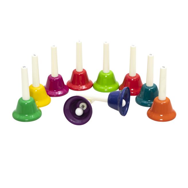 Mit Handglocken erzeugen Ihre Schüler reine Klänge nur mit der Hand. Die Sortierung in Farben ist hilfreich beim Notenlernen. Die Schüler spielen einfach bekannte Tonfolgen nach oder kreieren eigene Melodien.