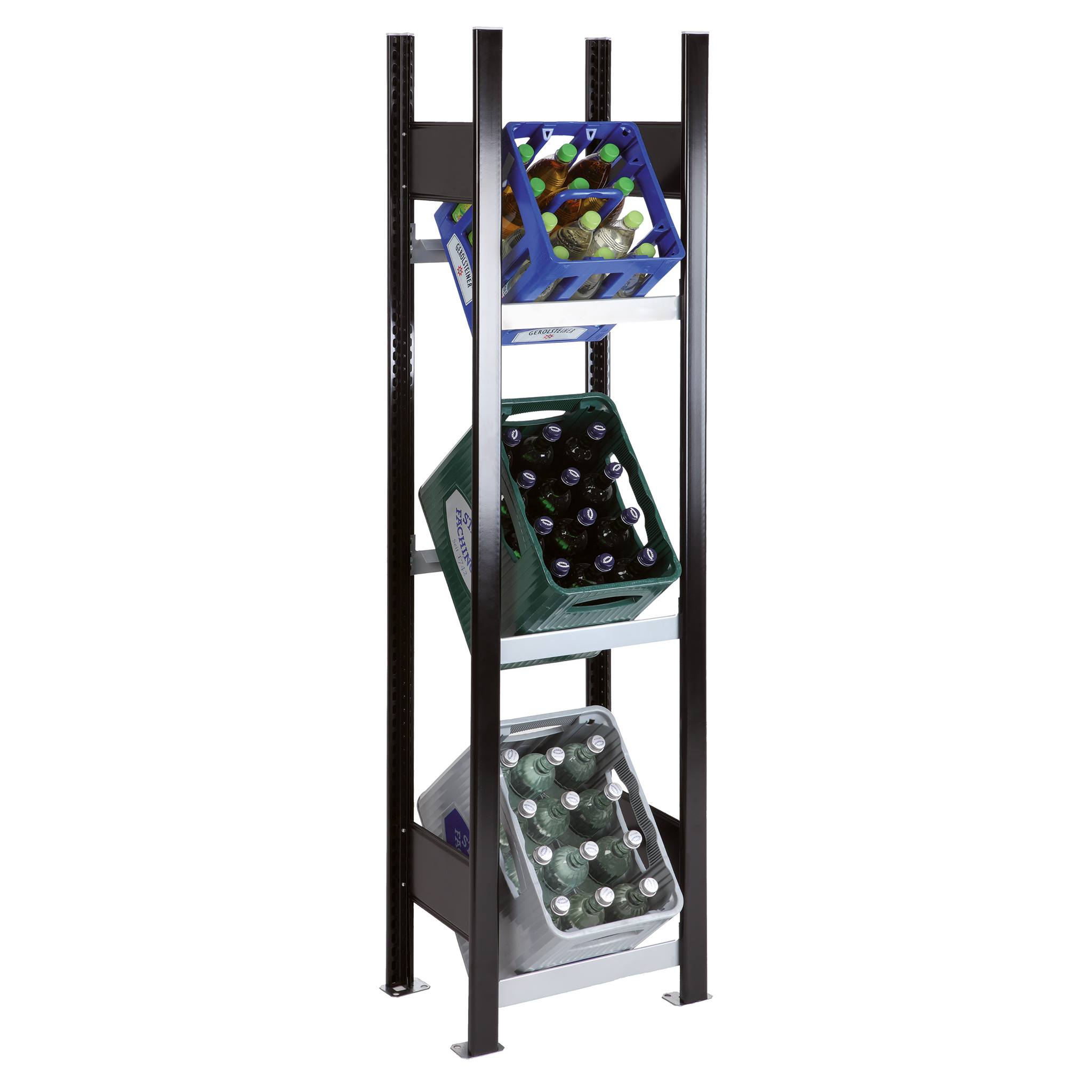 Verstauen Sie gängige Getränkekisten übersichtlich und gut zugänglich in den praktischen Regalen. Erhältlich in unterschiedlichen Breiten und Höhen. Einseitig nutzbar und Getränkeflaschen sind einzeln entnehmbar. Durchgehende Winkelprofile und Traversen bieten höchste Stabilität. Extrem robust sind die Regale dank des verzinkten Metalls. Die einzelnen Ebenen sind im Raster von 2,5 cm höhenverstellbar. Schneller Aufbau durch einfaches Stecken der Ebenen.