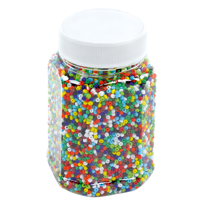 Die bunt gemischten Glasperlen (Rocailles Perlen) laden förmlich dazu ein Ketten und Armbänder aufzufädeln. Auch hervorragend geeignet zum Herstellen von kleinen Perlenfiguren, zum Weben oder zum Verzieren von Textilien.