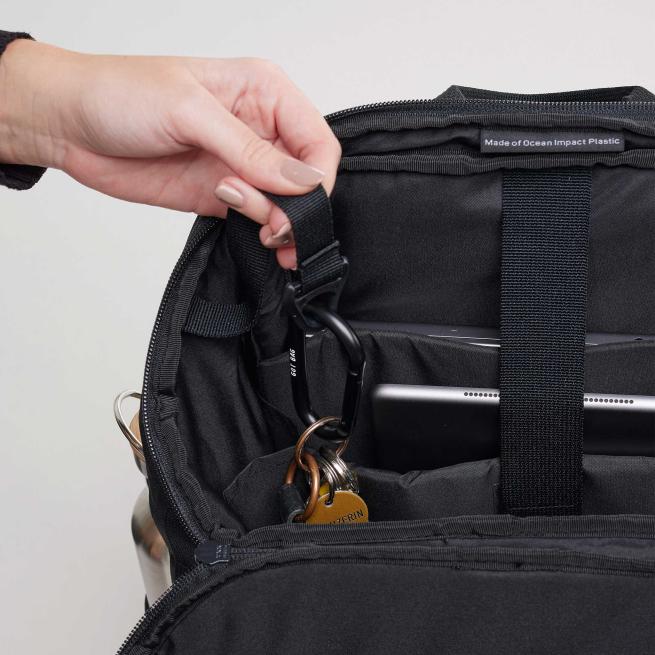 Der GOT BAG Pro Pack wartet gleich mit einer ganzen Reihe praktischer Ausstattungselemente auf: Entdecken Sie z. B. das integrierte 16-Zoll-Laptopfach für den rutschfesten Transport Ihres Laptops, das Sie sowohl vom Hauptfach des Rucksacks als auch von außen aus nutzen: Ein zusätzlicher seitlicher Reißverschluss-Zugriff am Rücken des Pro Packs macht es möglich! Darüber verfügt der Rucksack über zahlreiche inliegende Einsteckaschen, Reißverschlussfächer, ein Schlüsselband und elastische Stiftehalter, wodurch Sie wirklich jedes Kleinteil gut sortiert an passendem Platz verwahren. Die seitliche Einstecktasche an der Schmalseite des Hauptfachs verfügt über einen Kabelzugang, der Ihnen beispielsweise ermöglicht, Ihr Smartphone unterwegs in stabiler Position zu laden.