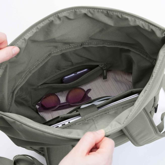 • mit flexiblem Rolltop-Verschluss samt Reißverschluss