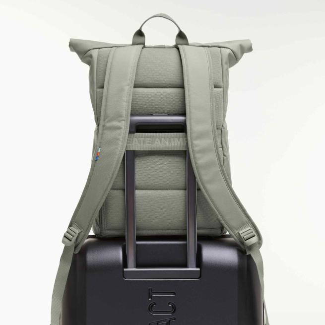 Auch mit dem Rolltop Easy genießen Sie bequemen Tragekomfort: Dank der ergonomischen Schultergurte sowie des atmungsaktiven Rückenpolsters sind Sie allseits entspannt unterwegs und schonen Ihre Schultern und Ihren Rücken. Mithilfe des praktischen Kofferstraps am Rückenteil befestigen Sie den Rucksack bei Bedarf auch am Ausziehgriff Ihres Reisekoffers.