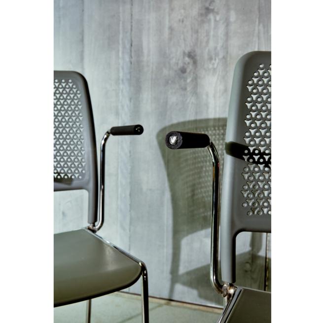 Armlehnen: Armablage aus Gummi, Ausleger aus verchromtem Stahl