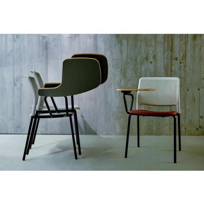 Grafton-Stuhl mit Klapptisch: Perfekt geeignet für Vortragsräume, in denen die Zuhörenden mitschreiben wollen. Sie benötigen keine zusätzlichen Tischmöbel und sparen reichlich Platz und Geld. Der Klapptisch besitzt eine leichte Nierenform. Sie erhalten ihn wahlweise im Standardformat oder extragroß.