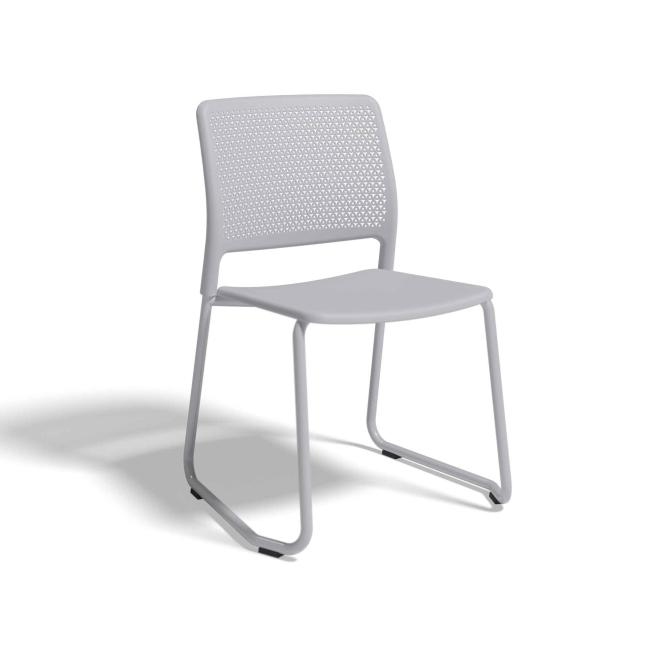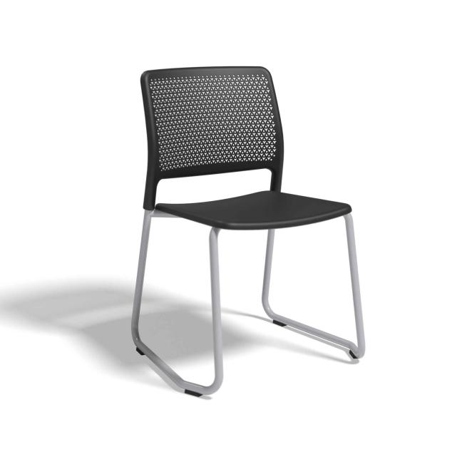 Die Rückenlehne aus robustem Polypropylen (mindestens 30 % Recyclinganteil) ist ganzflächig perforiert und daher sowohl besonders stabil als auch luftdurchlässig. Sie sorgt für ein angenehmes sowie gut belüftetes Sitzen und ist eine clevere Alternative zu geschlossenen Rückenlehnen oder Exemplaren aus Mesh. Die fließend abgerundete Gestaltung sämtlicher Ecken und Kanten von Rückenlehne, Sitzfläche und Gestell gewährleistet zusätzlich soliden Sitzkomfort.