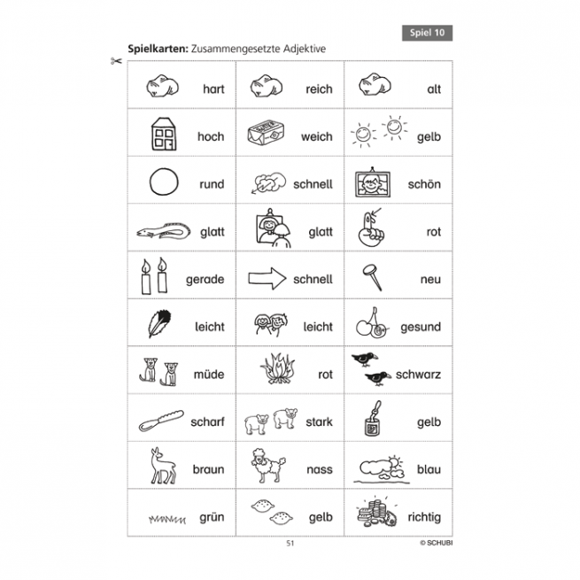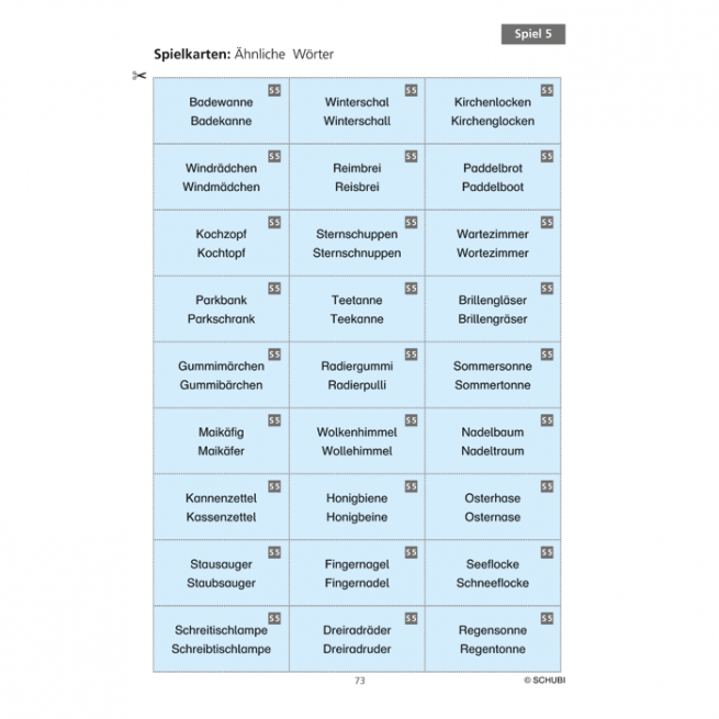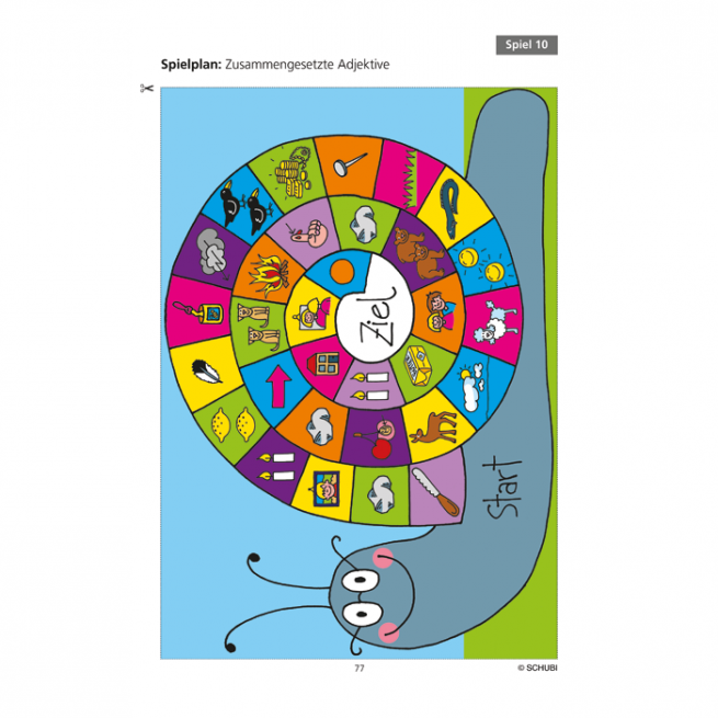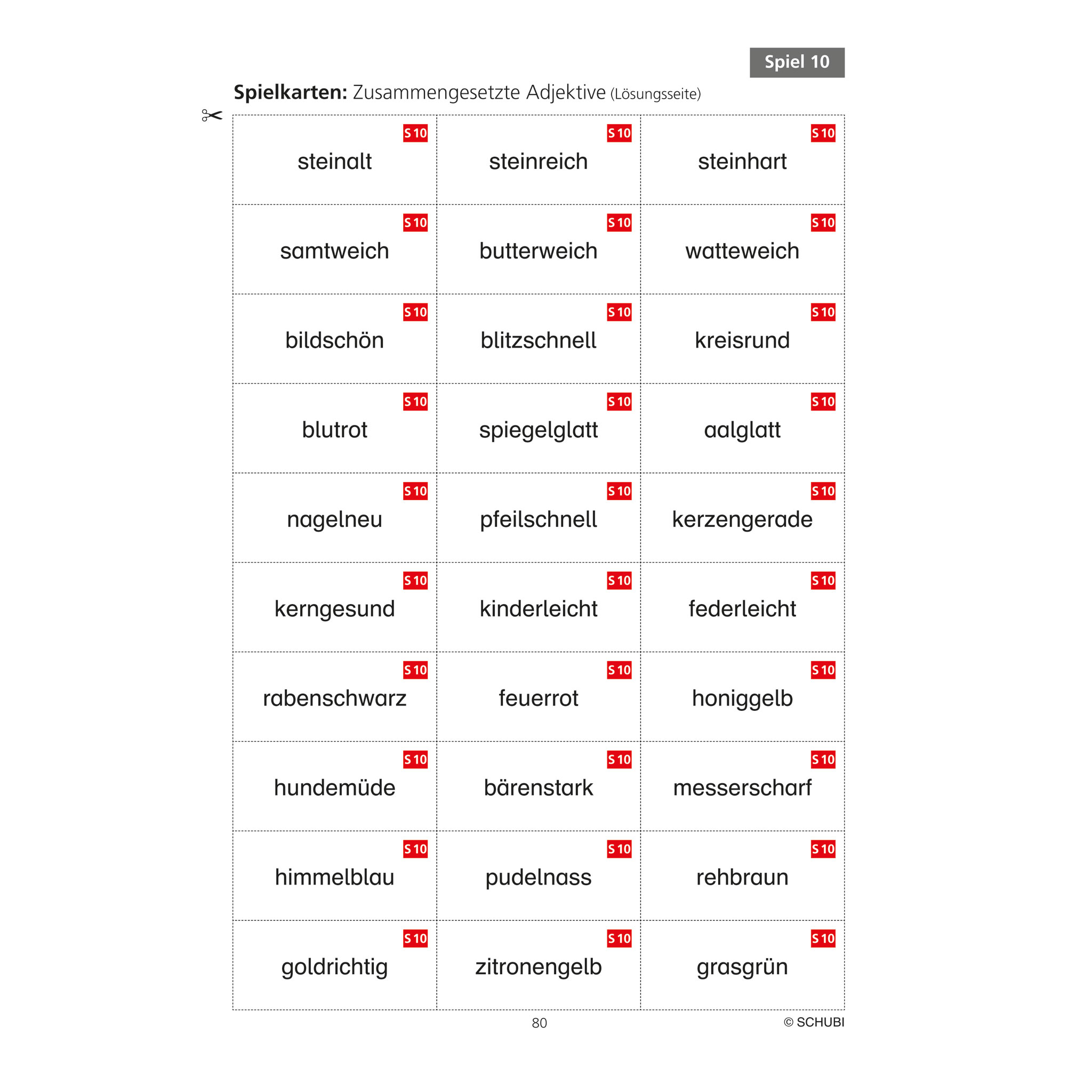 Inhalt: 16 Spiele mit Anleitungen, Spielkarten und Spielplänen, davon 4 als farbige Kartonbeilage • Einleitung zum Einsatz im Grammatikunterricht • didaktischer Kommentar zu den einzelnen Lernspielen • Spielepass • Grammatikurkunden