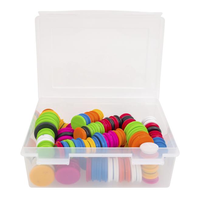 Diese jeweils 40 Greifmagnete in Rot, Grün, Gelb und Blau gehören in jedes Klassenzimmer. Bis zu 7 DIN-A4-Blätter halten die starken, 0,5 cm hohen Magnete gleichzeitig. Wählen Sie zwischen Ø 2 cm oder 3 cm.