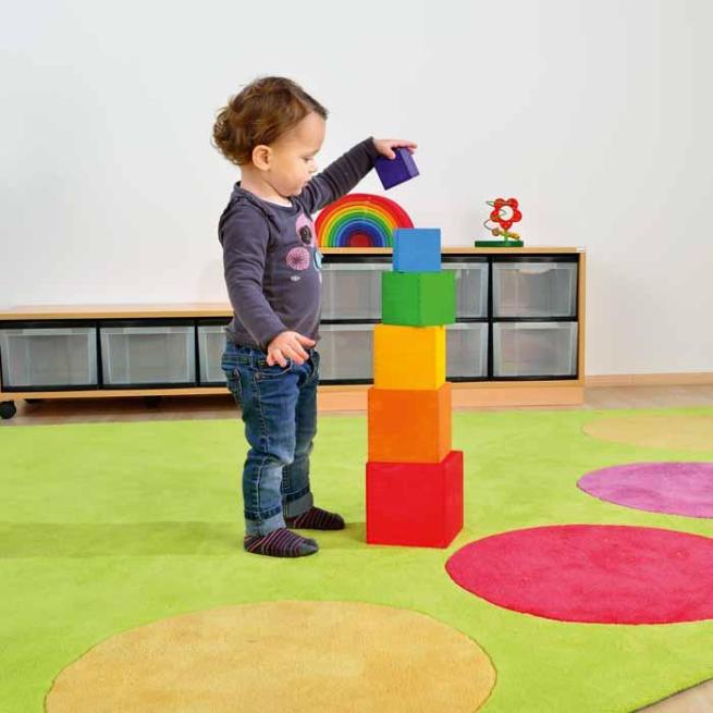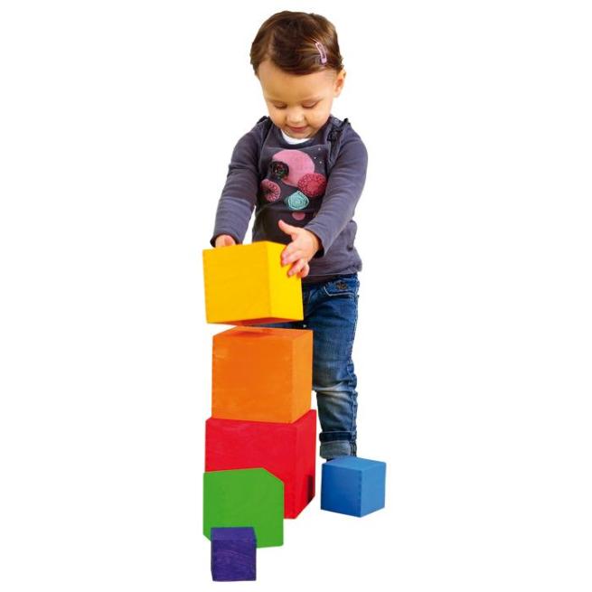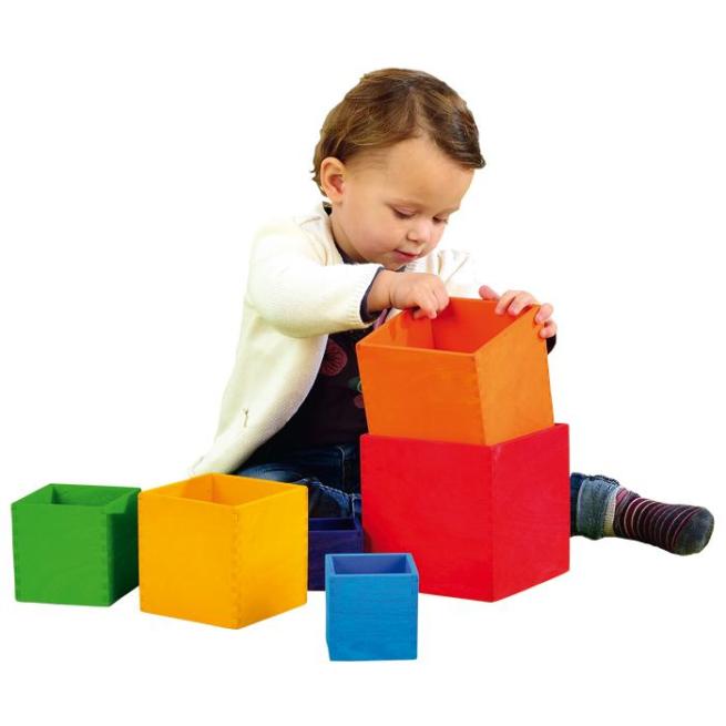 Stapelspiele bieten unzählige Möglichkeiten für die Fantasie: Eben noch ein Haus für Plastikmännchen, dann als Reitparcours für Pferde oder eine Wiege für Puppen. Natürlich kann auch nach Lust und Laune aufeinander und ineinander gestapelt werden.
