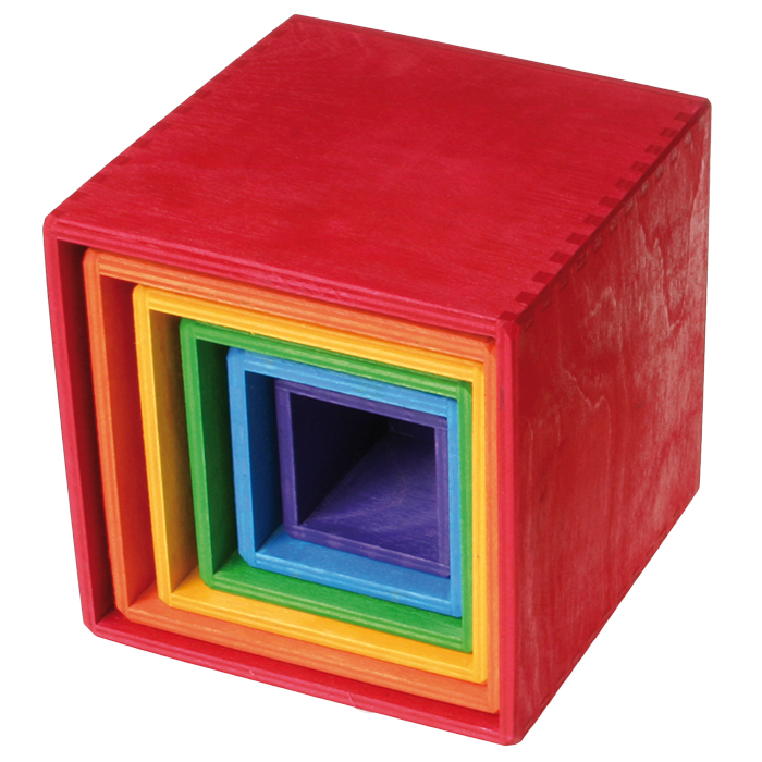Jede Kiste hat einen anderen Klang und eine tolle leuchtende Farbe. Da macht das Aufeinander- oder Ineinanderstapeln so richtig Spaß. Scharfe Ecken und Kanten gibt es nicht, denn alles ist von Hand nachgeschliffen.