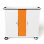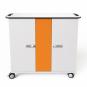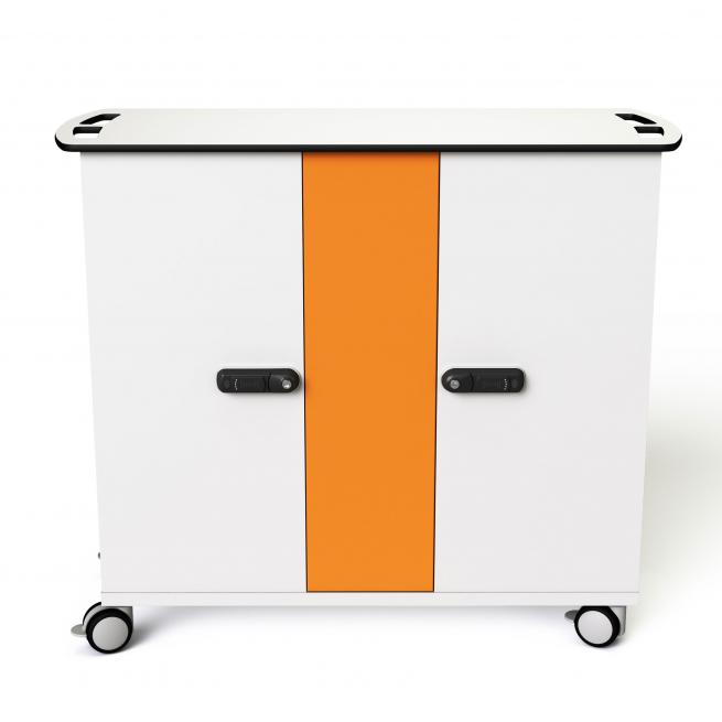 Dank durchdachtem Kabelmanagementsystem vermeiden Sie Kabelsalat und nutzen immer nur ein angemessen kurzes Stück Ihres Hersteller-Ladekabels für das jeweilige Endgerät. Für den leichten Zugang lassen sich die Türen des Ladewagens um 270° zurückklappen. Die elektrische Schachtabdeckung ist modellgebunden farbig abgesetzt. Mit vier leichtgängigen, feststellbaren Rollen, Grifflöchern und Belüftung. Wahlweise mit Schlüssel- oder Codeschloss.
