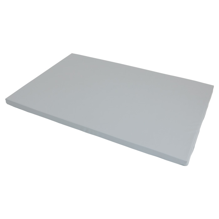 Bezogen mit grauem Kunstleder. Unterseite mit Anti-Rutsch-Beschichtung.