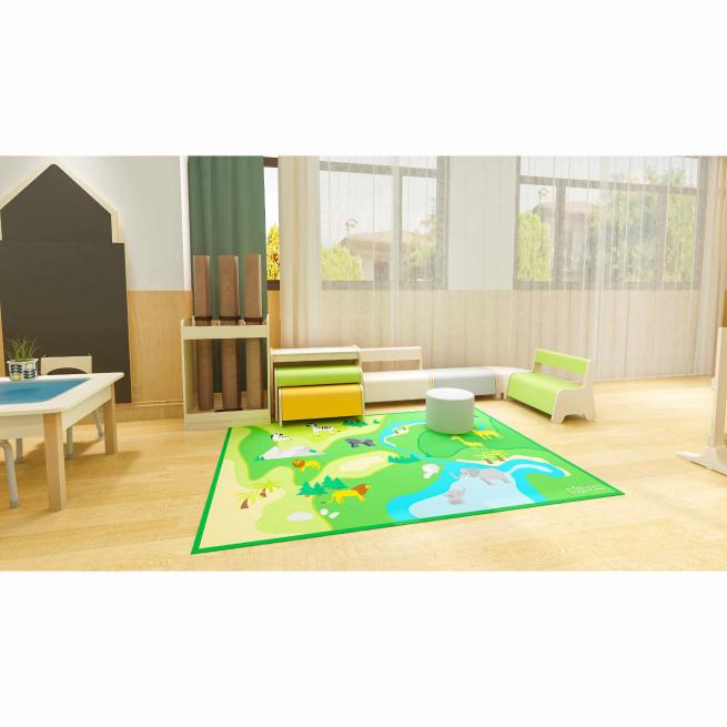 Alle Teppiche bestehen aus phthalatfreiem, flammhemmendem Polyamid, das sich einfach absaugen lässt und das dem lebhaften Kita-Alltag zuverlässig standhält. Die 6 mm dicke Oberfläche ist angenehm weich und lädt dazu ein, sich hinzusetzen, Figuren darüber zu schieben, Fahrzeugwelten zu bauen oder Rollenspiele zu gestalten. Die rutschfeste Unterseite sorgt dabei für Sicherheit.Ein Teppich, zahlreiche Möglichkeiten