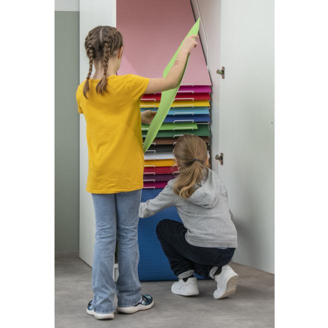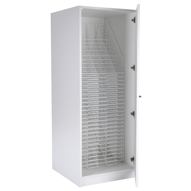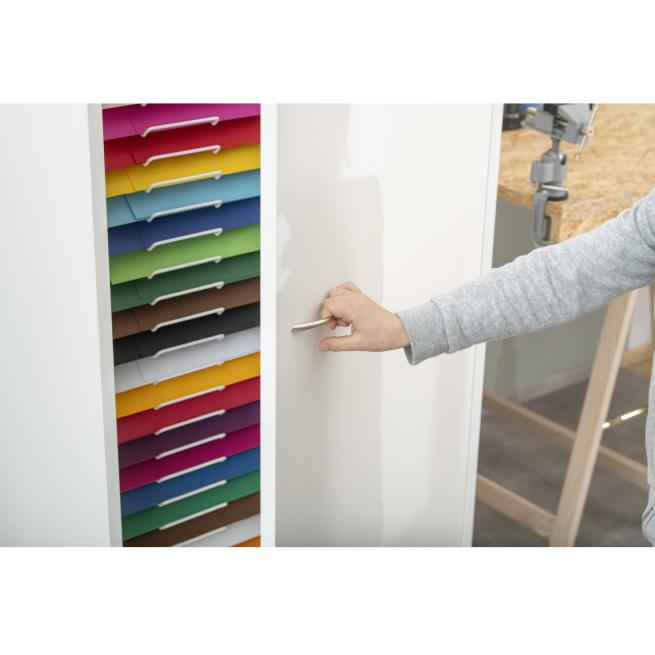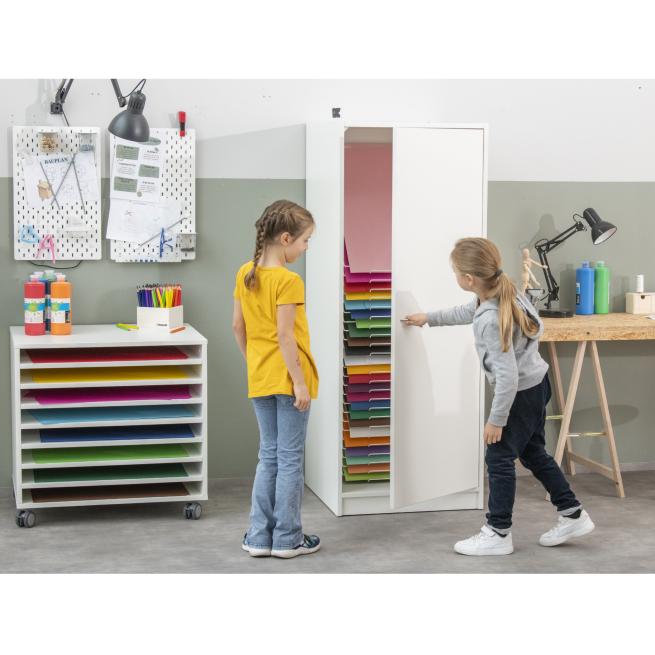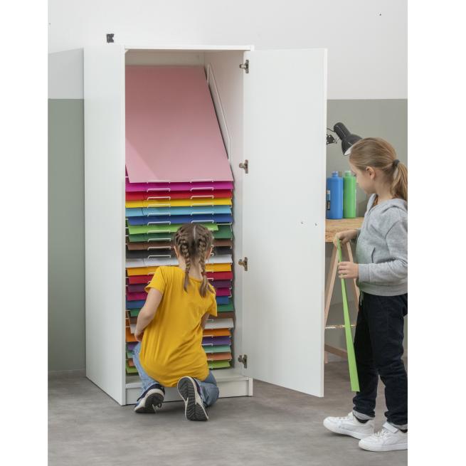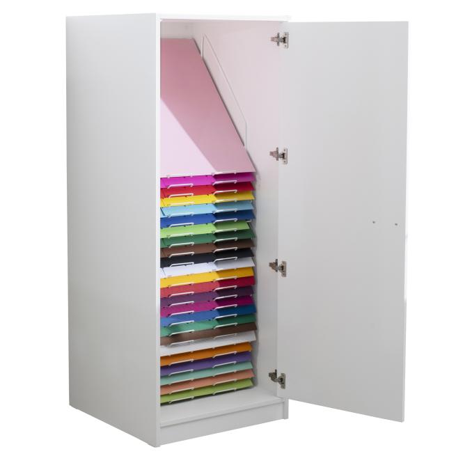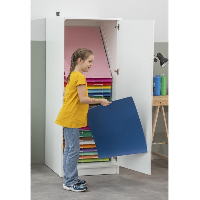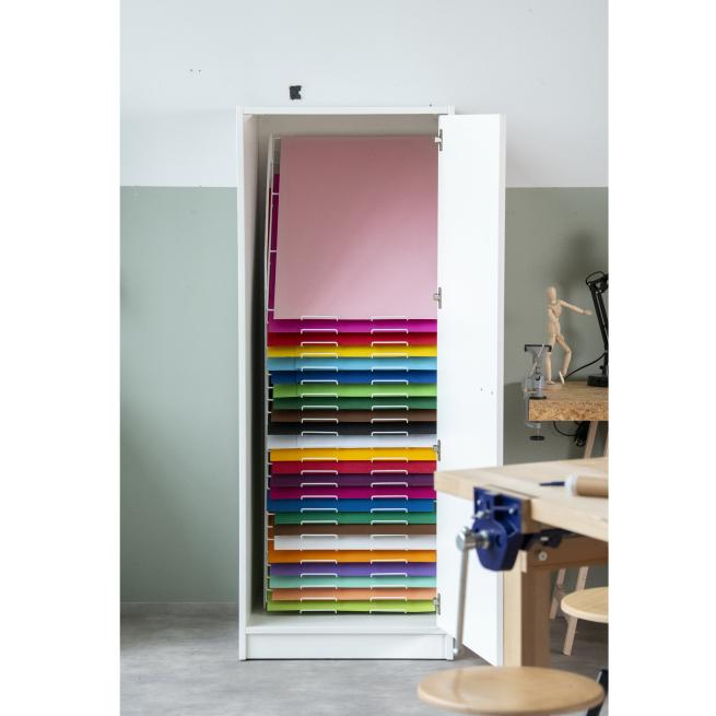 Mit 24 großzügigen Fächern bietet der Papierschrank eine praktische Möglichkeit, Papierbögen bis zum Format 50 x 70 cm ordentlich zu verstauen und gleichzeitig gut zu organisieren. Durch die 24 Fächer wird eine einfache Trennung und Sortierung der verschiedenen Bögen ermöglicht, sodass diese stets griffbereit und leicht zugänglich sind. Dank des stabilen Ablagesystems und der robusten, geschlossenen Konstruktion bleibt das Papier vor Staub, Schmutz und anderen Einflüssen geschützt.