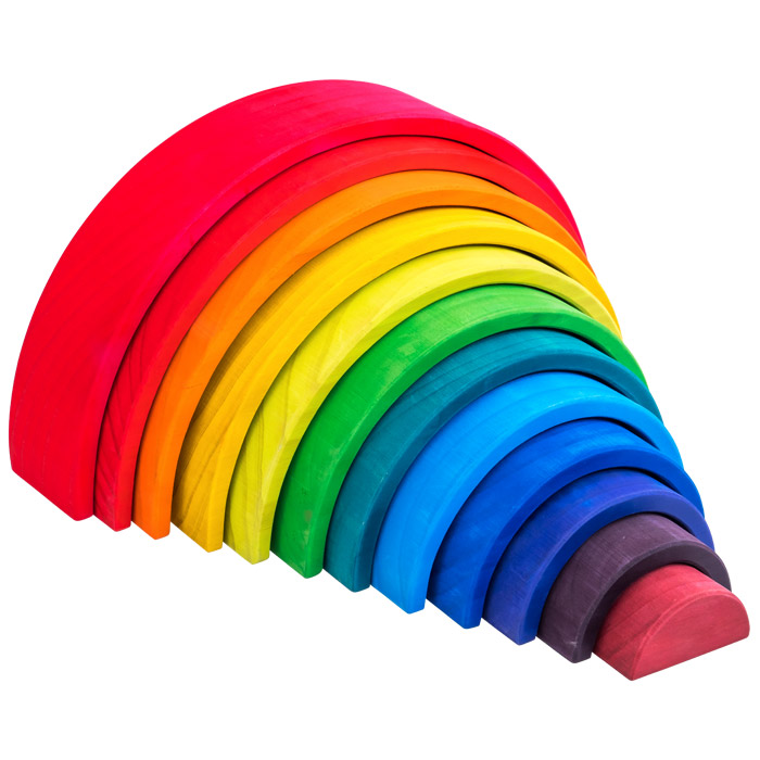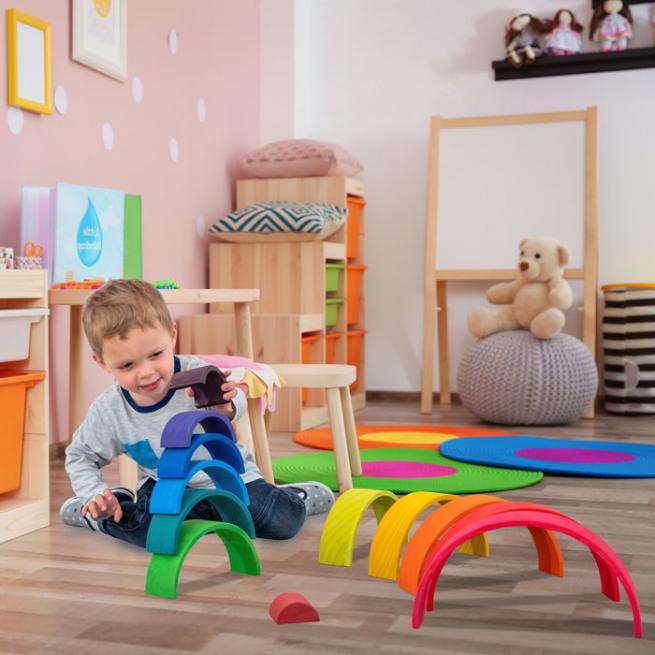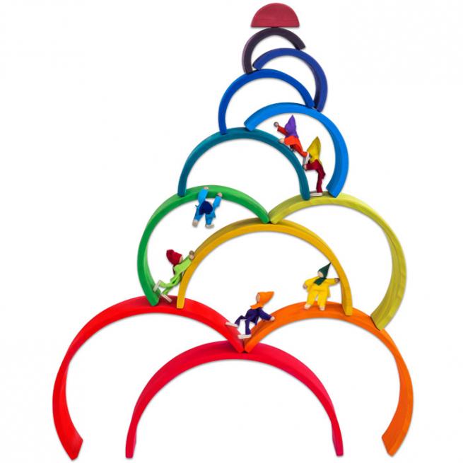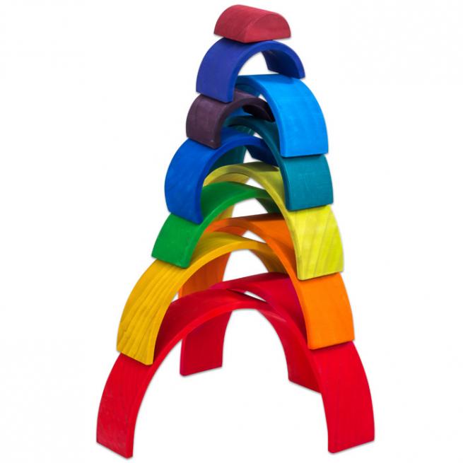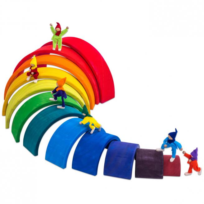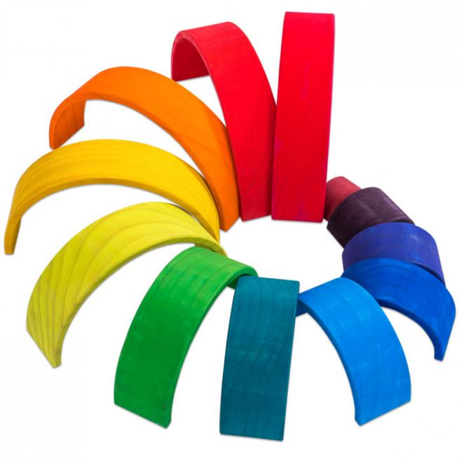 Super Training für Farbenlehre, räumliches Denken und Sensomotorik. Ob Wolkenscheiben oder kleine Regenbogen und große Regenbogen in starken Farben bzw. naturbelassen – alle Teile bestehen aus zertifiziertem Kiefernholz, sind abgerundet und für Kinderhände gut greifbar. Im Nu stapeln Ihre Kinder Türme, sortieren die einzelnen Elemente nach Farben oder bauen Tunnel, Höhlen oder sogar eine Kugelbahn.