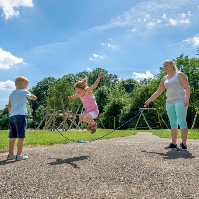 - Tasche: 100 % Polyester<br/>Springseil: 100 % Polypropylen (PP)