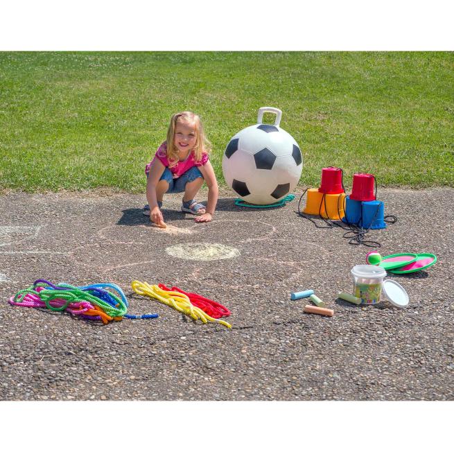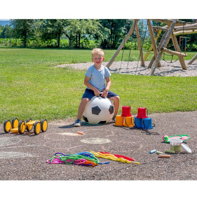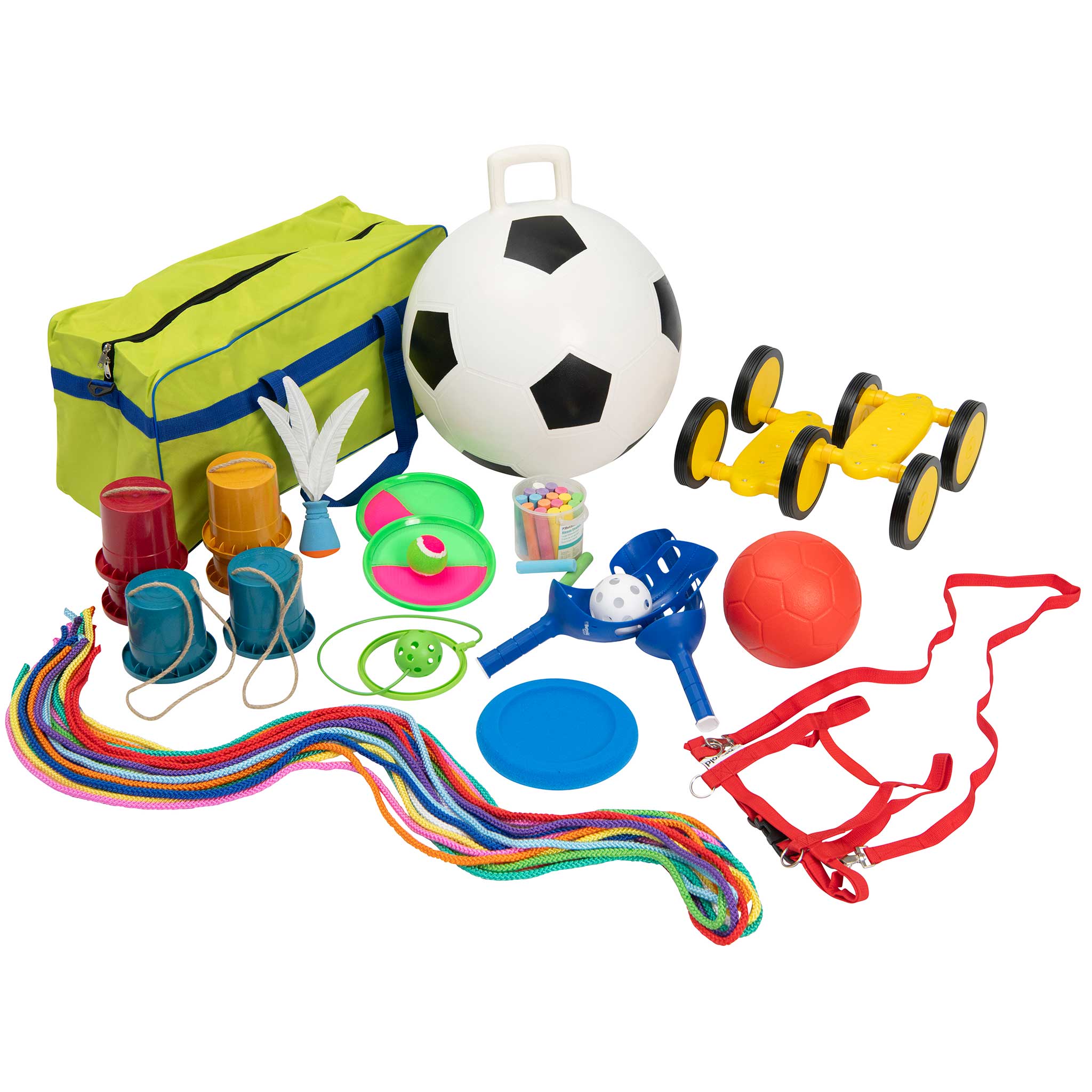 Perfekt geeignet für die Pause oder Ausflüge ins Freie. Die verschiedenen Bewegungsspiele sind ausreichend für eine ganze Klasse oder Gruppe. Alle Spielmaterialien (unaufgepumpt) finden Platz in einer praktischen Tragetasche.