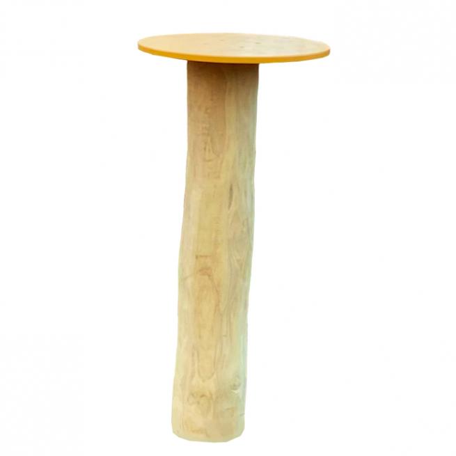 Alle Elemente bestehen aus witterungsbeständigem, superstabilem Robinienholz. Die Platte des Lehrerpults besteht aus recycelbarem Polyethylen in Gelb oder Blau.