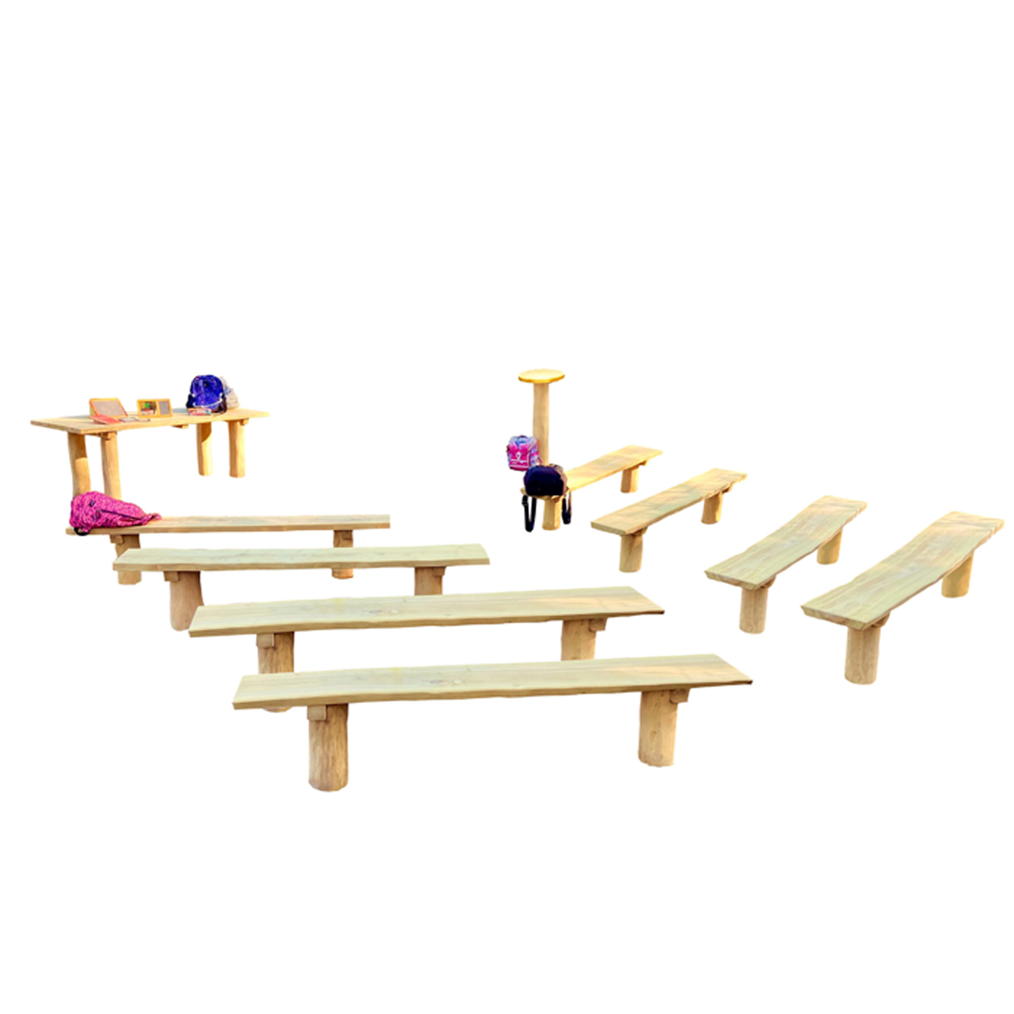 Vermitteln Sie Ihren SuS mitten im Lernort Natur lebendiges Wissen über die wichtigen Bildungsthemen Umweltbewusstsein und Naturschutz. Ob z. B. im Schulgarten oder auf der schuleigenen Rasenfläche – im Waldklassenzimmer unter freiem Himmel stellen Sie die Verbindung zur Natur besonders authentisch her. Ihr neues Outdoor-Klassenzimmer stellen Sie nach Ihrem Bedarf aus Pult, Lehrtisch, 8 Bänken, mit oder ohne Tafel zusammen. Tipp: Als Alternative schauen Sie sich auch das kleine Waldklassenzimmer mit 6 Bänken an.