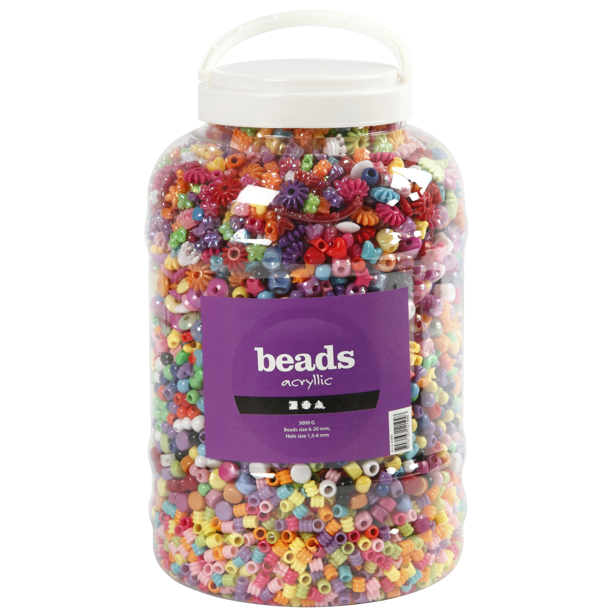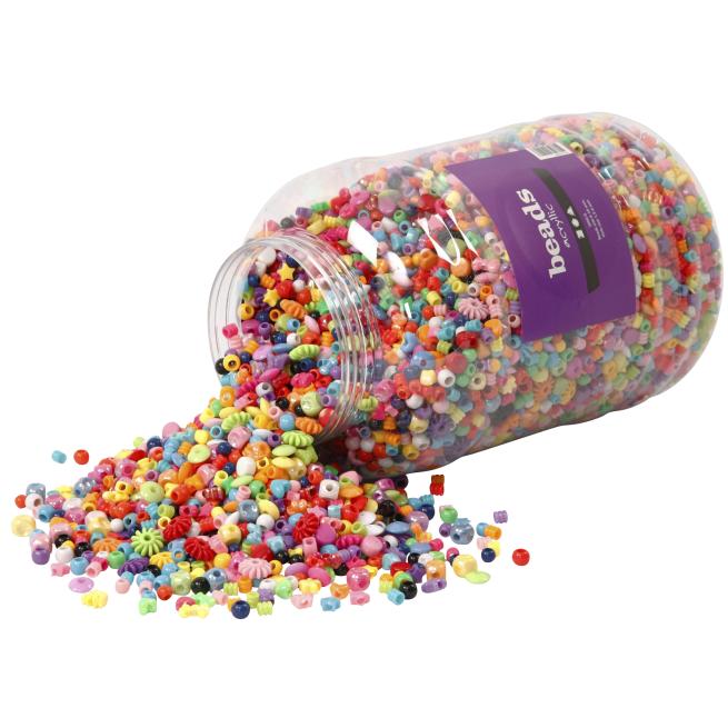 Legen Sie sich einen Vorrat an Bastelperlen für Ihre Gruppe an. In verschiedenen Farben,, Formen und Größen sortiert.