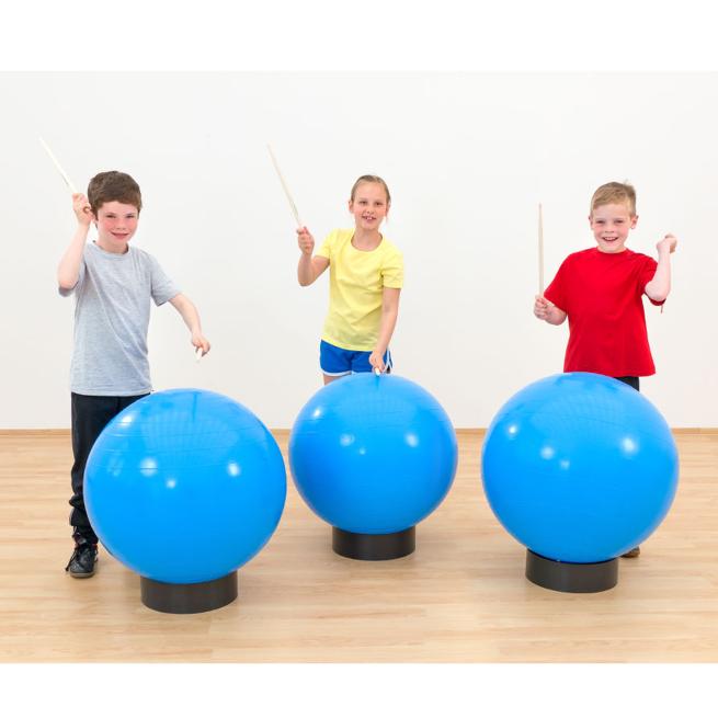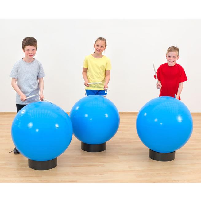 Gestalten Sie Muskel- und Rhythmustraining mit Ihren Kindern doch mal ganz anders. Kombinieren Sie den Gymnastikball mit dem Ring sowie den Drumsticks und schon entsteht eine riesige Trommel. Musik gibt den Takt vor und Ihre Kinder trommeln entsprechend. Super im Sportunterricht oder Toberaum. Der Gymnastikball ist bis max. 125 kg belastbar.
