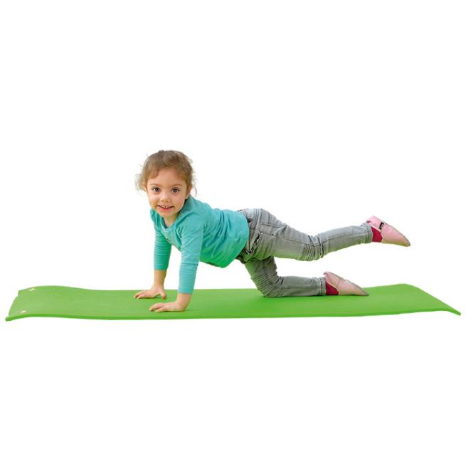 Das angenehme und pflegeleichte Material machen die preiswerte Gymnastikmatte ideal für den Schuleinsatz. Zur platzsparenden Lagerung hängen Sie die Matte entweder an den Metall-Ösen (Abstand 40,5 cm) an die Wand oder rollen sie mithilfe der 2 mitgelieferten Gummibänder auf. Ab 3 Jahren.