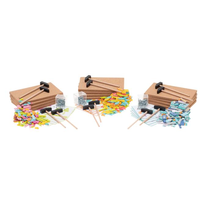 Das beliebte Geschicklichkeitsspiel fördert die kindliche Kreativität, Konzentration, Hand-Auge-Koordination und Feinmotorik. Koordiniert und konzentriert befestigen die Kinder die Mosaikformen auf der Korkunterlage, indem sie die Nägel durch die vorgebohrten Löcher in den Formen hämmern. Aus den enthaltenen Mosaikformen legen die Kinder unterschiedliche Vorlagen nach und entwickeln auch eigene Ideen für tolle Muster. Dabei experimentieren sie nicht nur viel, sondern entwickeln sogar nebenbei ein erstes Verständnis für geometrische Figuren und deren Spiegelungen. Ein tolles Geschicklichkeitsspiel für bis zu 4 Kinder gleichzeitig. Erhältlich in verschiedenen Ausführungen.