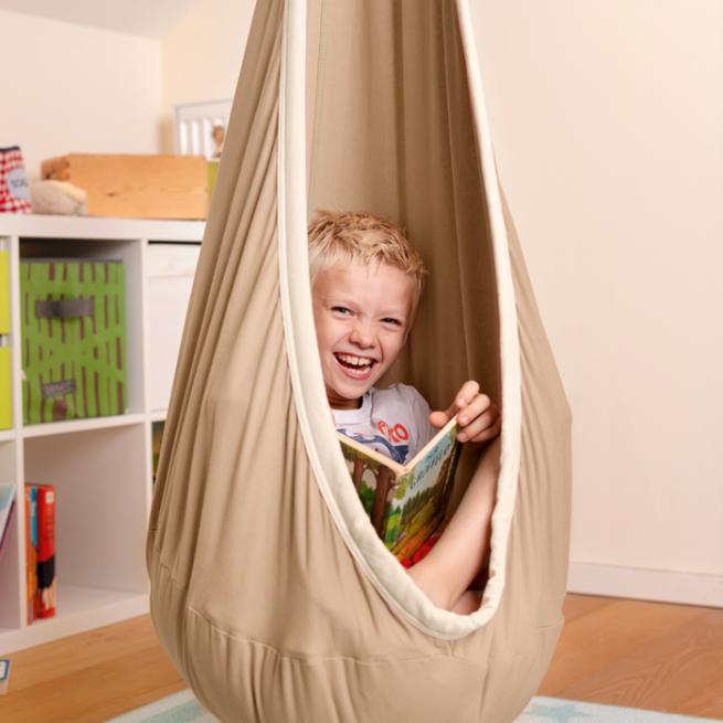 Gemütlich abhängen heißt es für Ihre Kinder in der Hängehöhle Joki. Gefertigt wird der neue Lieblingsplatz aus besonders weicher Bio-Baumwolle. Diese ist unbedenklich für Kinderhaut.