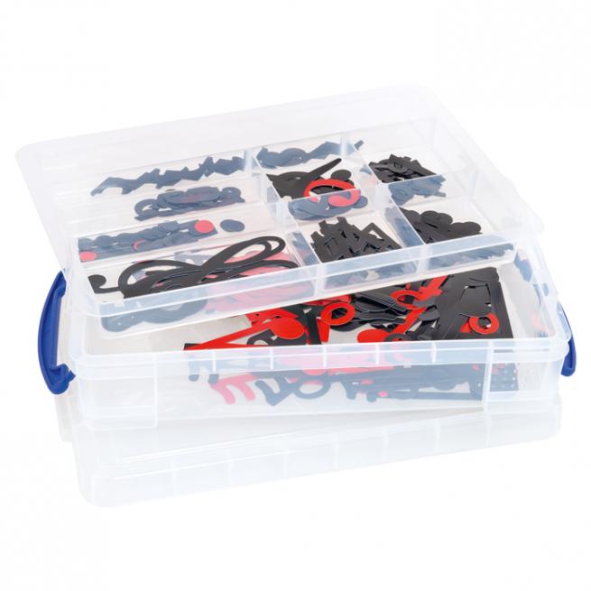Haft-Notensatz in Schwarz und Rot In einer transparenten Aufbewahrungsbox aus stabilem Kunststoff