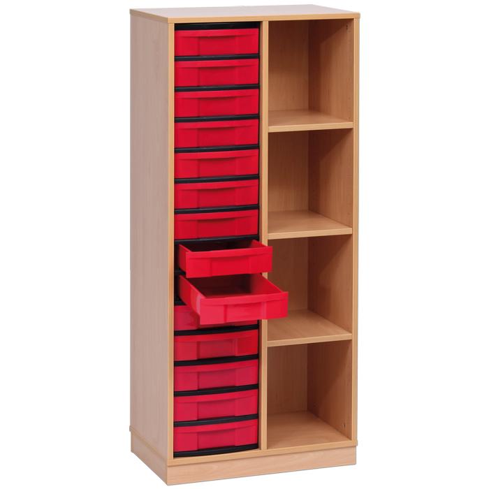 2-reihiges Regal mit 4 Fächern und 14 flachen Boxen