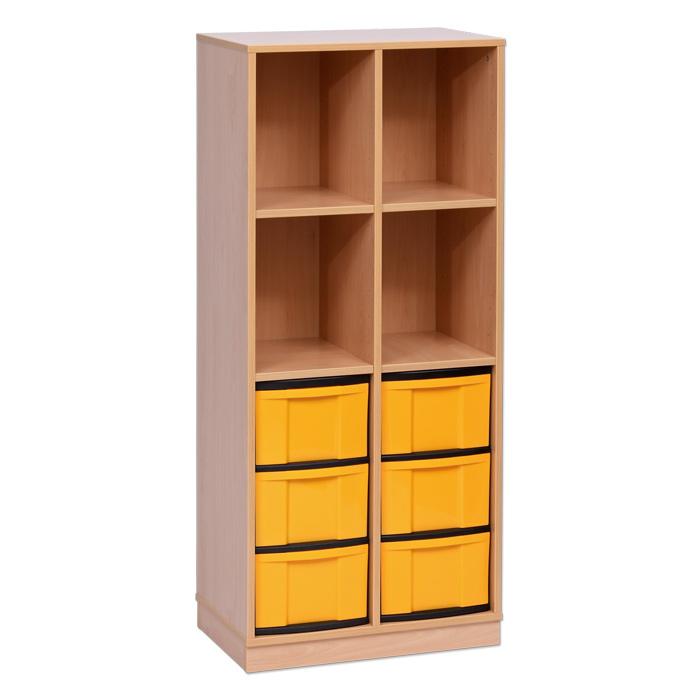 2-reihiges Regal mit 4 Fächern und 6 hohen Boxen
